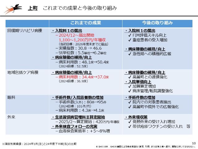 最も大きかった改善は病床管理。特に個室料収益については、患者を第一に考えるあまり、個室料を病院が負担しているというケースが散見されました。これについては濱崎秀一院長が自ら動き、適切な個室料徴収に向けて院内周知を徹底しました。濱崎院長は、GHCのコンサルティングについて、「理屈ばかりでメッセージを投げかけるだけではなく、我々と同じ目線で一緒に動いてくれるところが良かった」と振り返ります。