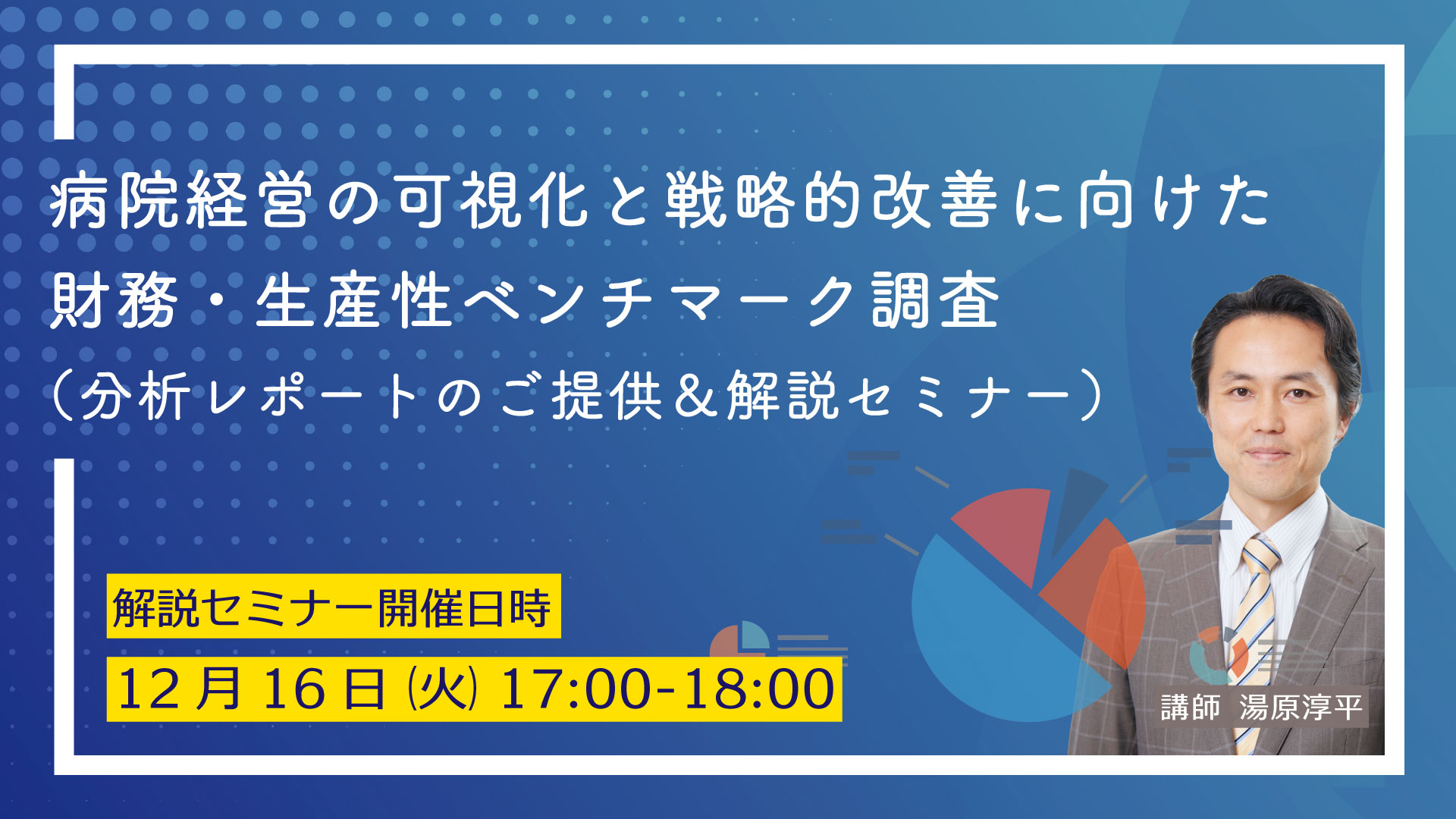 また、本調査にご参加頂いた皆さま限定で、調査結果をより深く理解し、病院経営にご活用頂けるよう、12月16日(火)17時~18時に、解説セミナーも開催いたします。